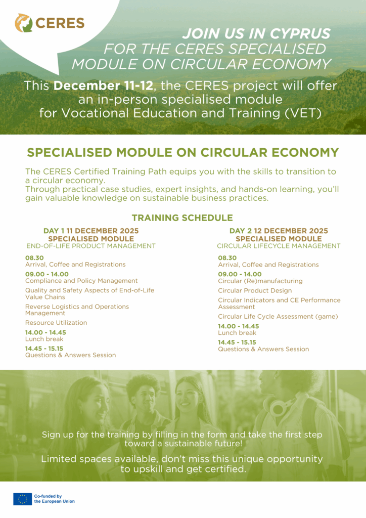 Join the CERES Training in Cyprus: Specialised Courses on Circular Economy